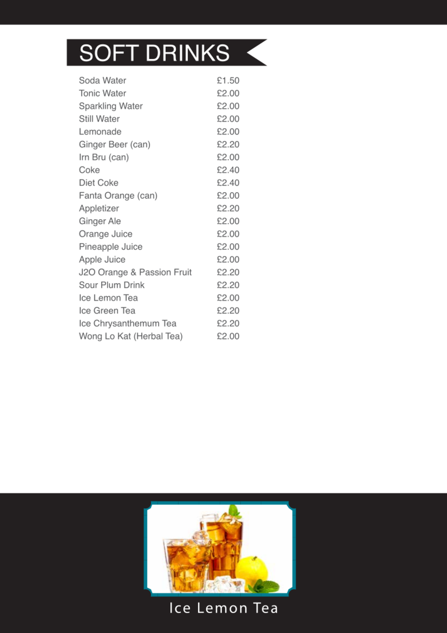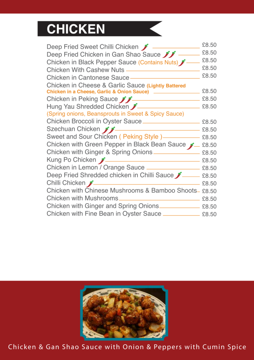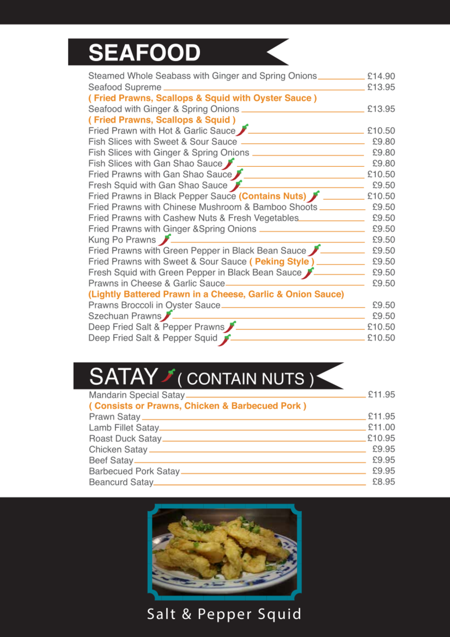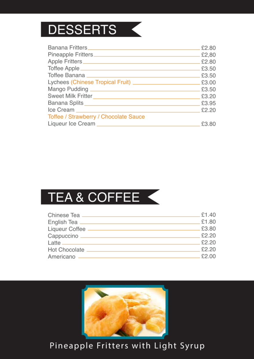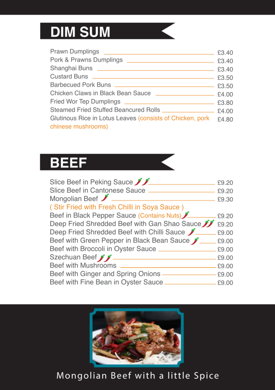 Our menu of dishes available at our sit in restaurant.